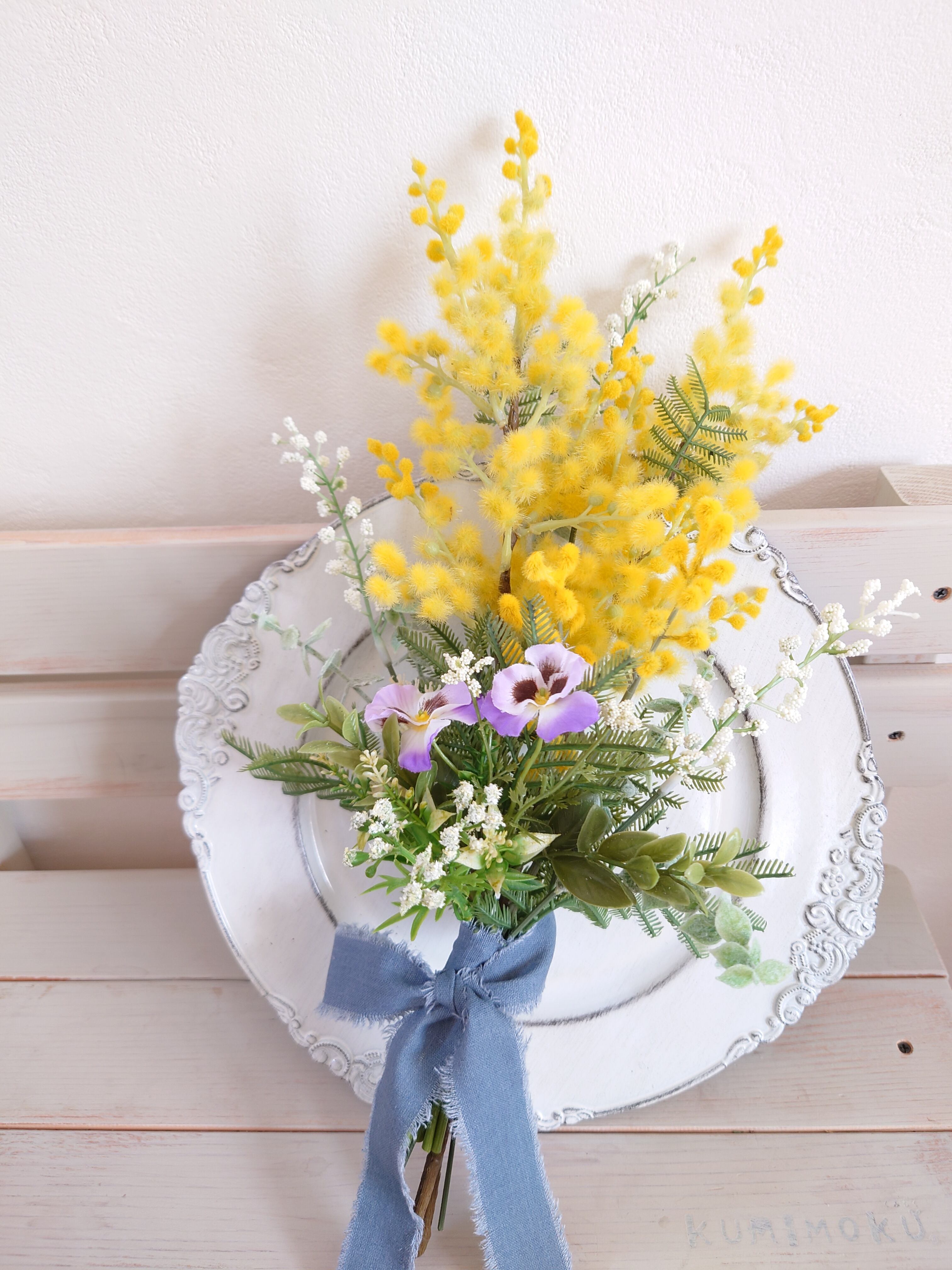 アーティフィシャルフラワーミモザのブーケ。造花なので、お水は必要ありません。