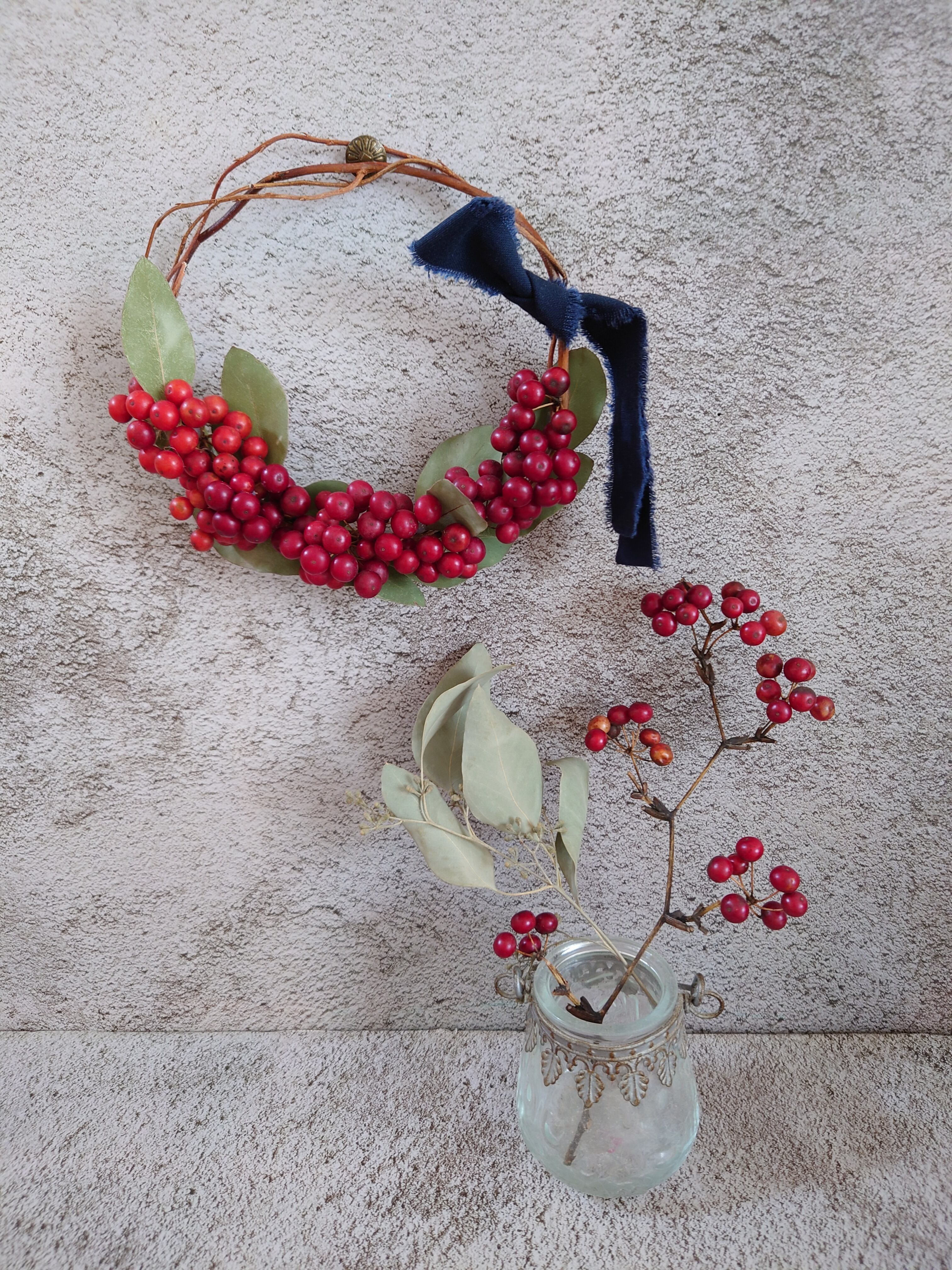 赤い実がとっても可愛いサンキライのナチュラルな雰囲気のリースです。