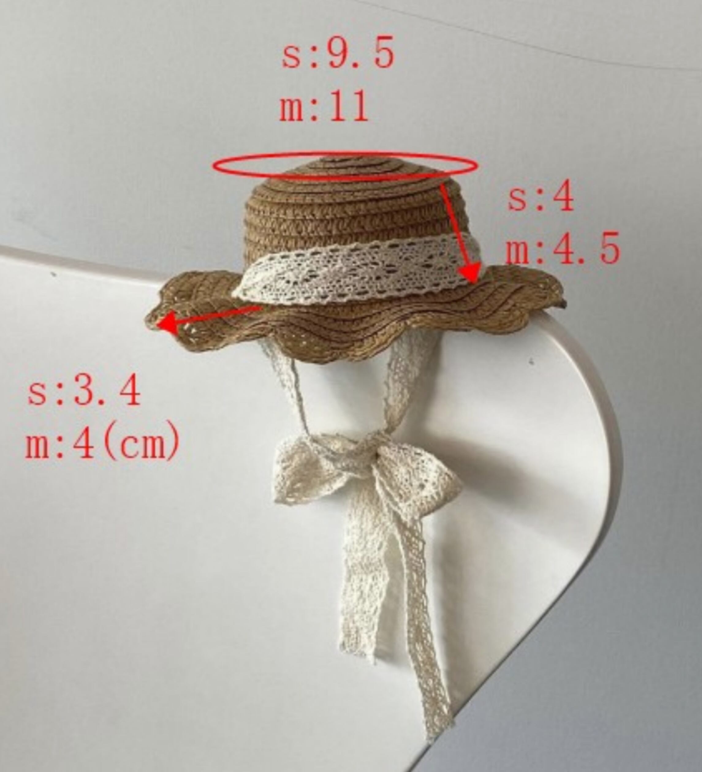 ワンちゃんの花飾り付き麦わら帽子(濃いベージュ・Sサイズ)