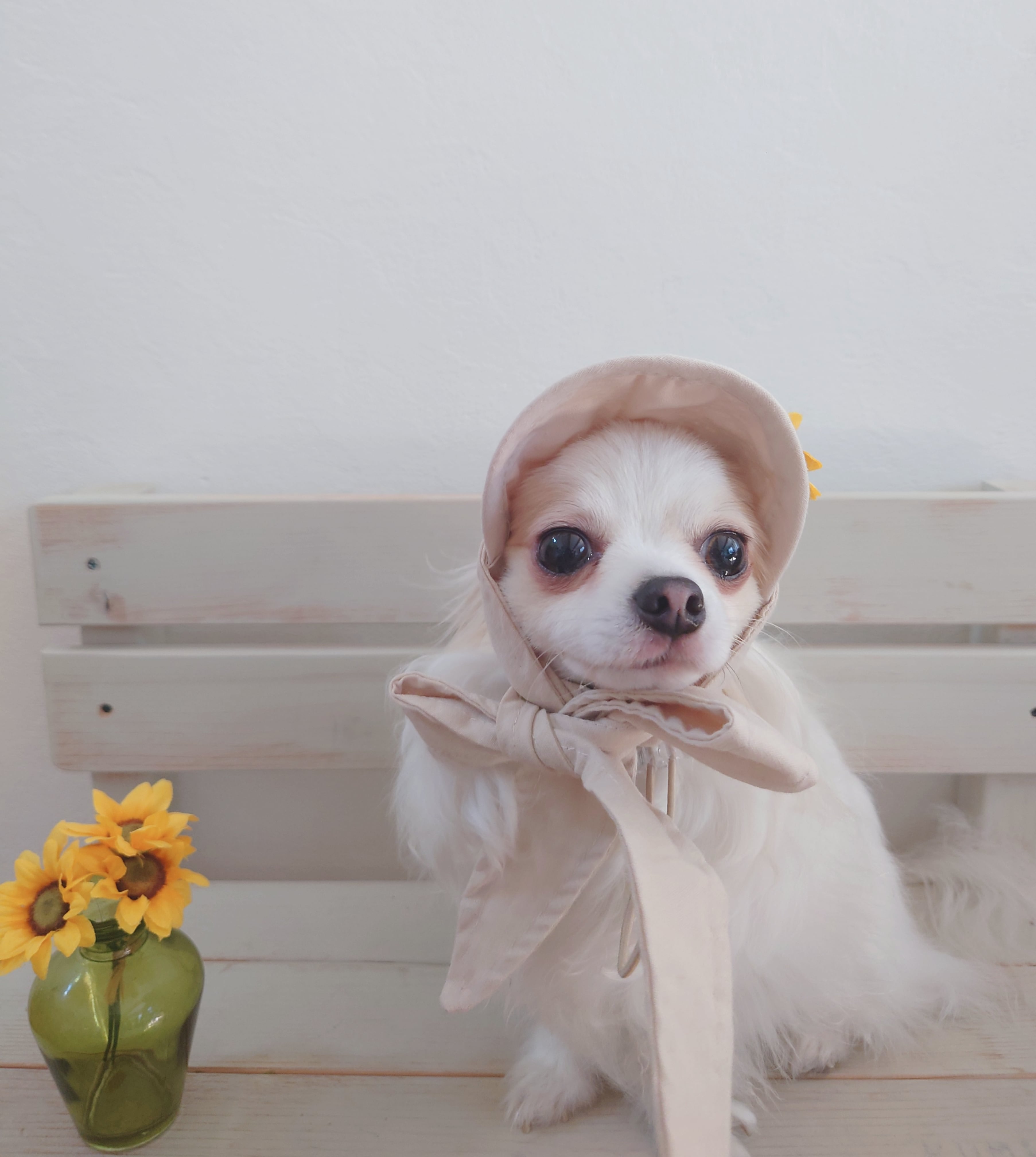 ワンちゃんの花飾りつきサンバイザー