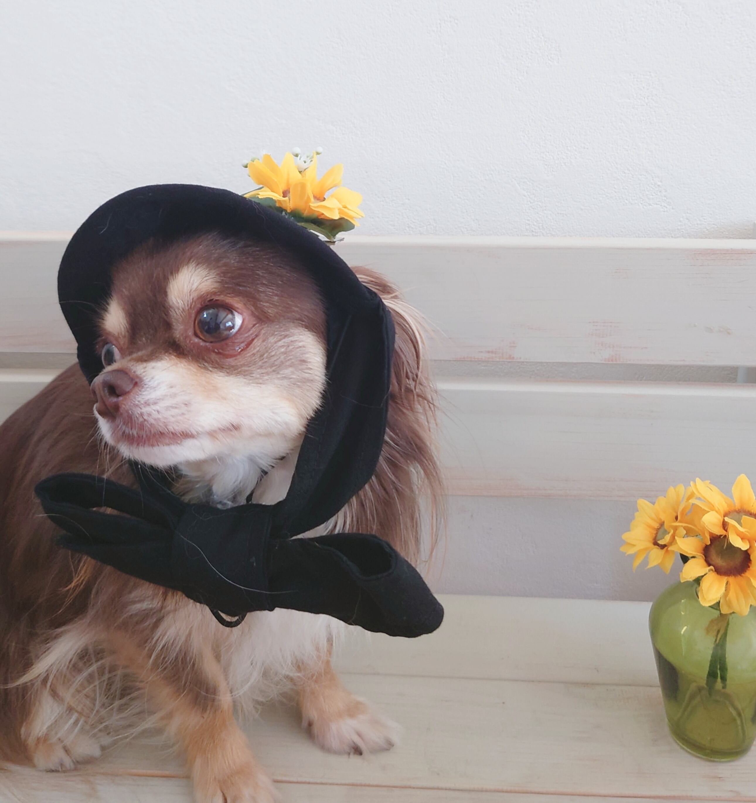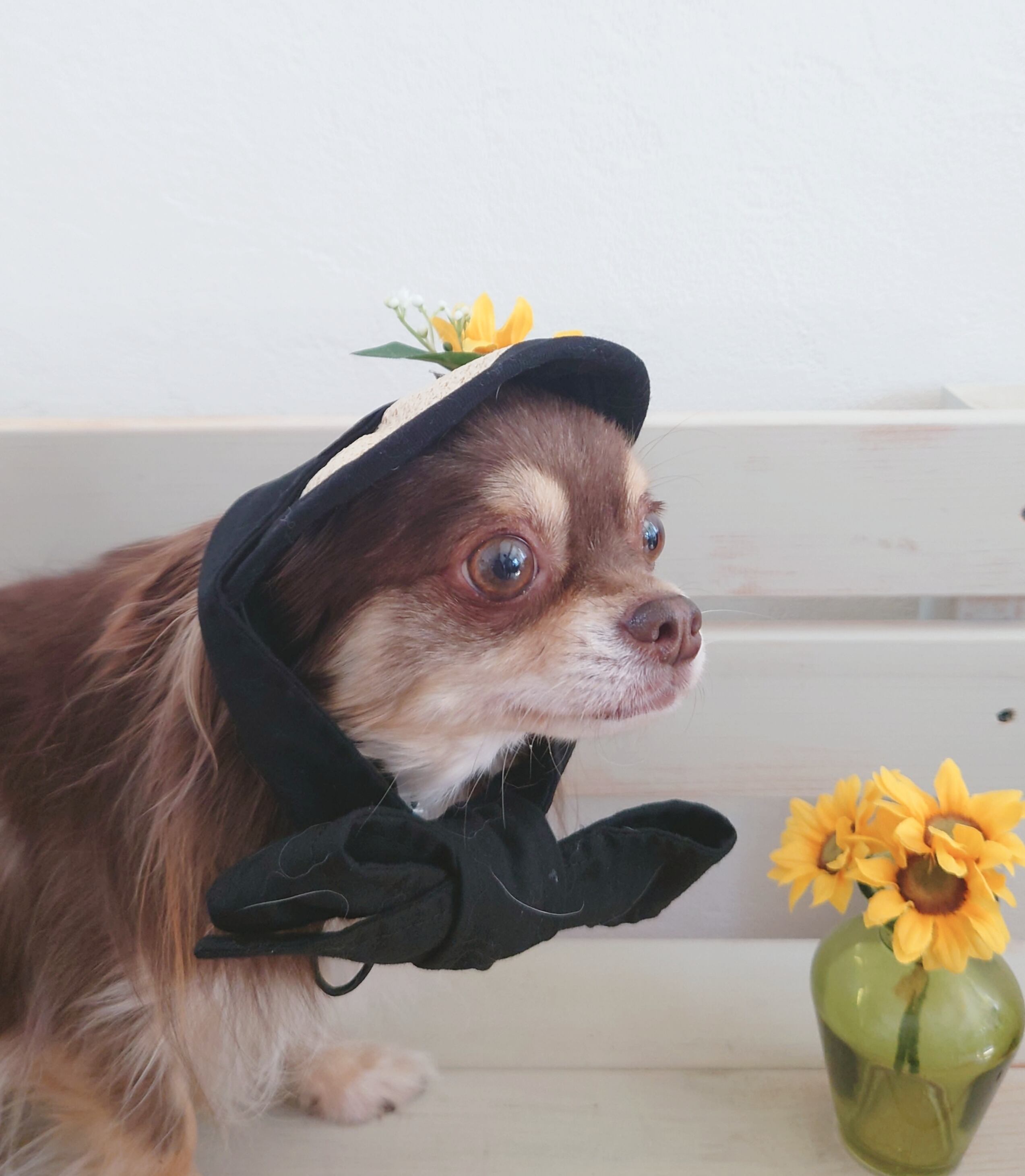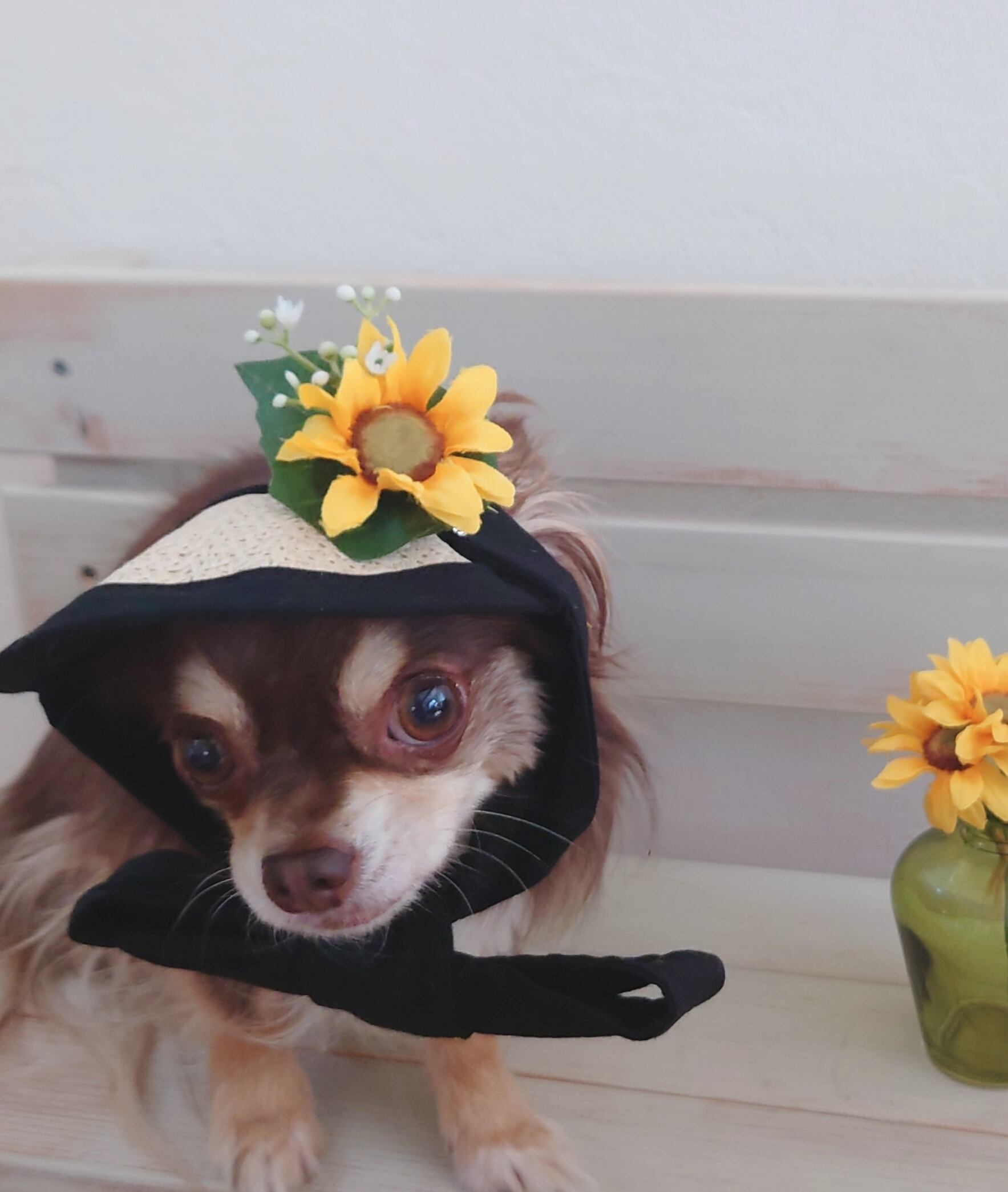 ワンちゃんの花飾り付きサンバイザー