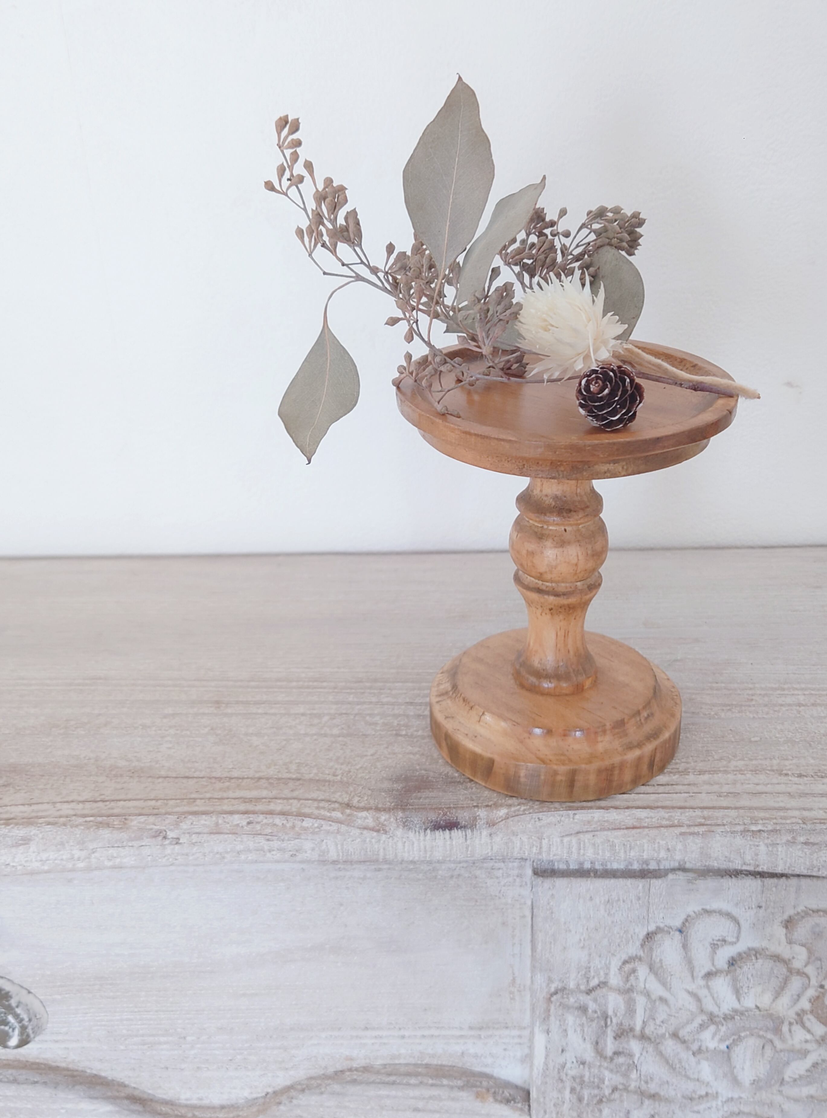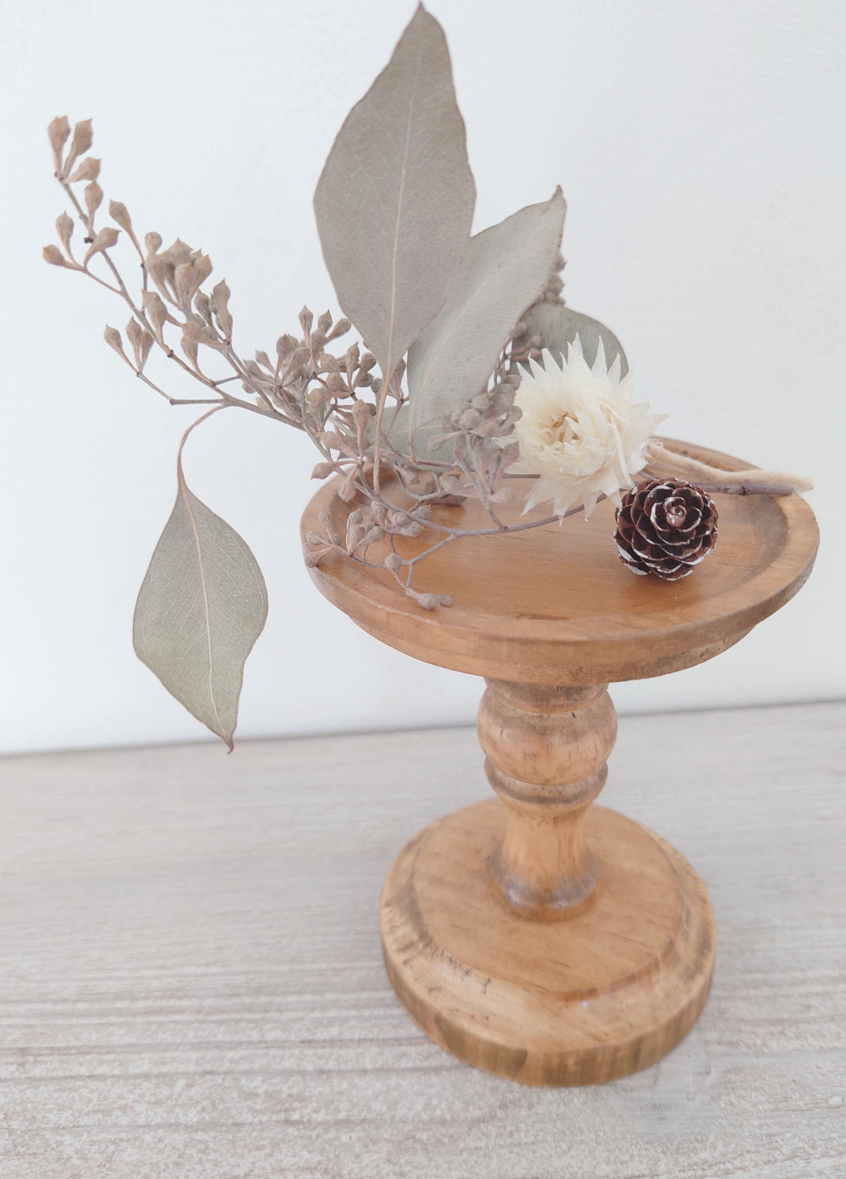 天然木の風合いを活かしたアンティーク風のキャンドルスタンド。