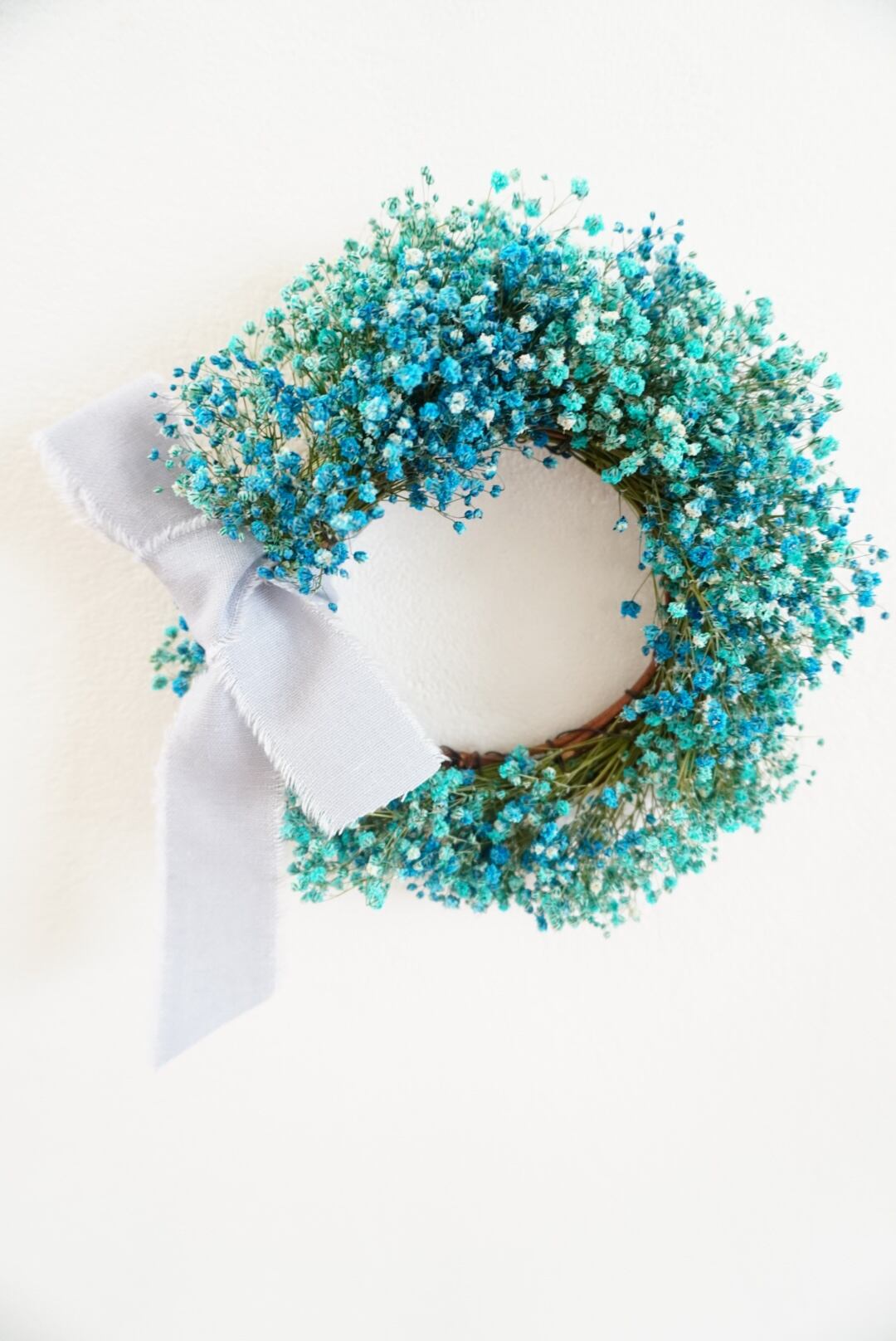染めカスミソウで作成しているので、長い間色が褪せず綺麗に飾っていただけます。